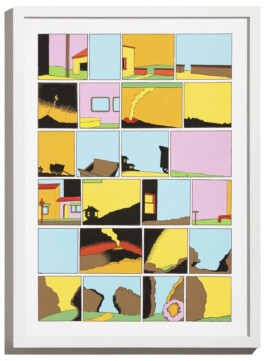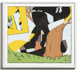 However, his gouache-painted comics are his most recognisable series, inspired by the classic Donald Duck cartoons, created by Carl Barks (1901–2000). In these large formatted strips, he finds ways of decomposing the source material and questioning the narration and sequential understanding of images in general. They are devoid of protagonists, speech bubbles or action. Leaving us with eerie, deserted spaces – holes for potential narratives to be inserted. Or to remain forever empty… Niklaus lives and works in Zurich.